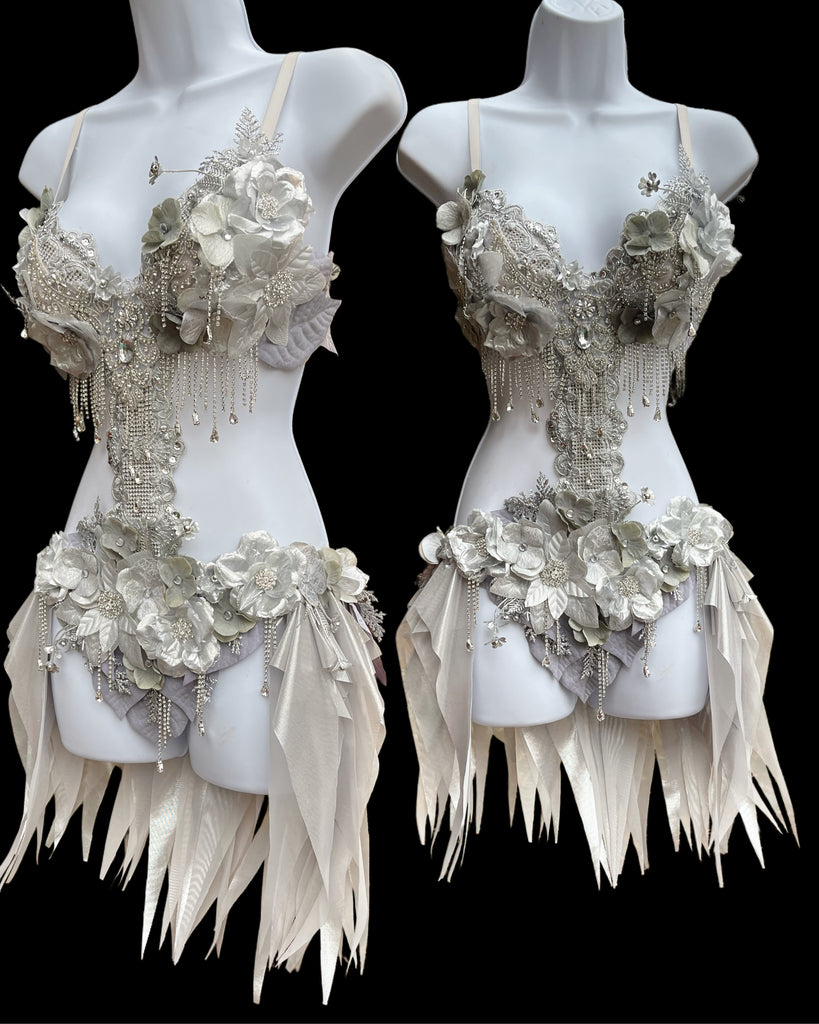 Dripping in Silver Diamond Spring Fairy Goddess with Center Strap Monokini Dress Costume