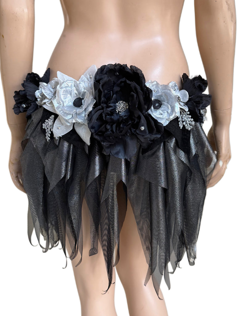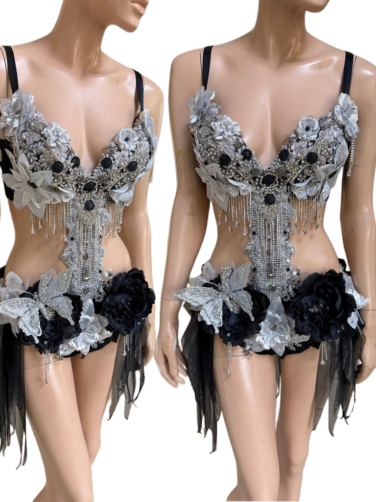 Ready to Ship - 34C Medium - Dripping in Silver and Black Diamond Spring Fairy Goddess with Center Strap Monokini Dress Costume